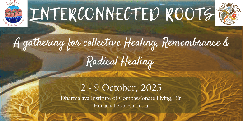 This gathering will take place between October 2 – October 9, 2025 in Dharmalaya Institute for Compassionate Living is a campus made of earth building in deep resonance with the local ecology, that nestles amidst the foothills of the mighty Dhauladhar range of the Himalayas, in Bir, Himachal Pradesh, India. Dharmalaya Institute is an Indian educational and charitable organisation devoted to empowering compassionate changemakers, with a practical focus on solutions for sustainable thriving and the adaptation of traditional wisdom for modern needs. Here, through rituals and community practices, a deep connection with the living in all its forms is fostered.