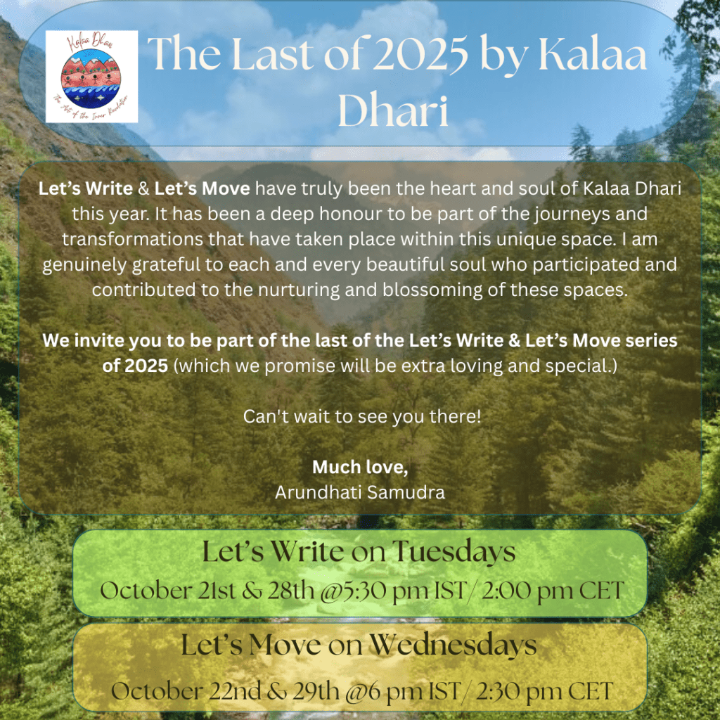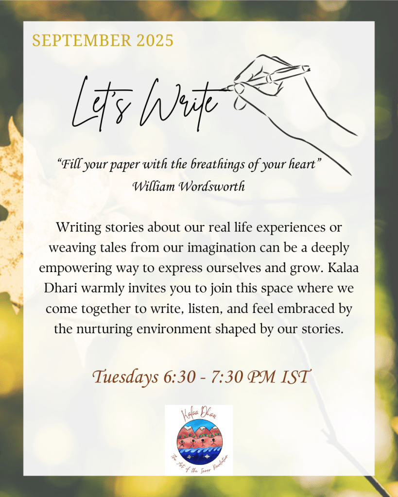 Writing stories about our real life experiences or from our imagination could be an empowering tool of expression & expansion. Through this initiative, Kalaa Dhari offers a space to come together, write, listen & be held in the container created by our stories.