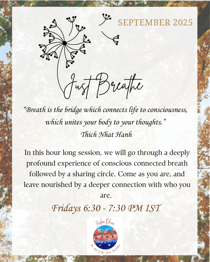 Led by Arundhati, this Breath-work workshop series will focus on consciously connecting with your breath in accordance with the cycle of the Moon in September. Participants will come together on the New moon, the First Quarter, Full Moon, and the Third Quarter embracing the opportunity to breathe and deeply connect with the moon’s cyclic brilliance. No prior breath work experience is required to attend this workshop.