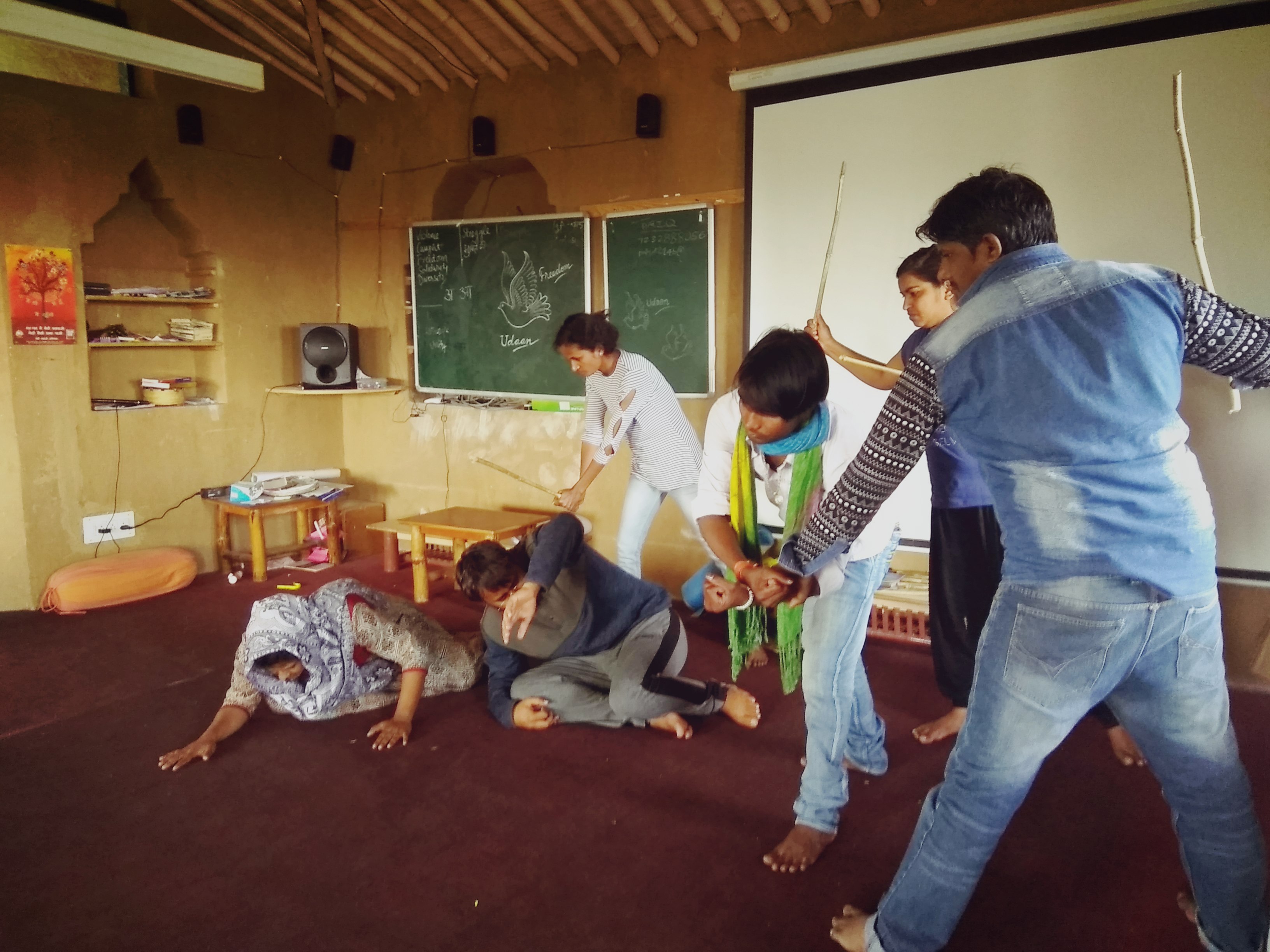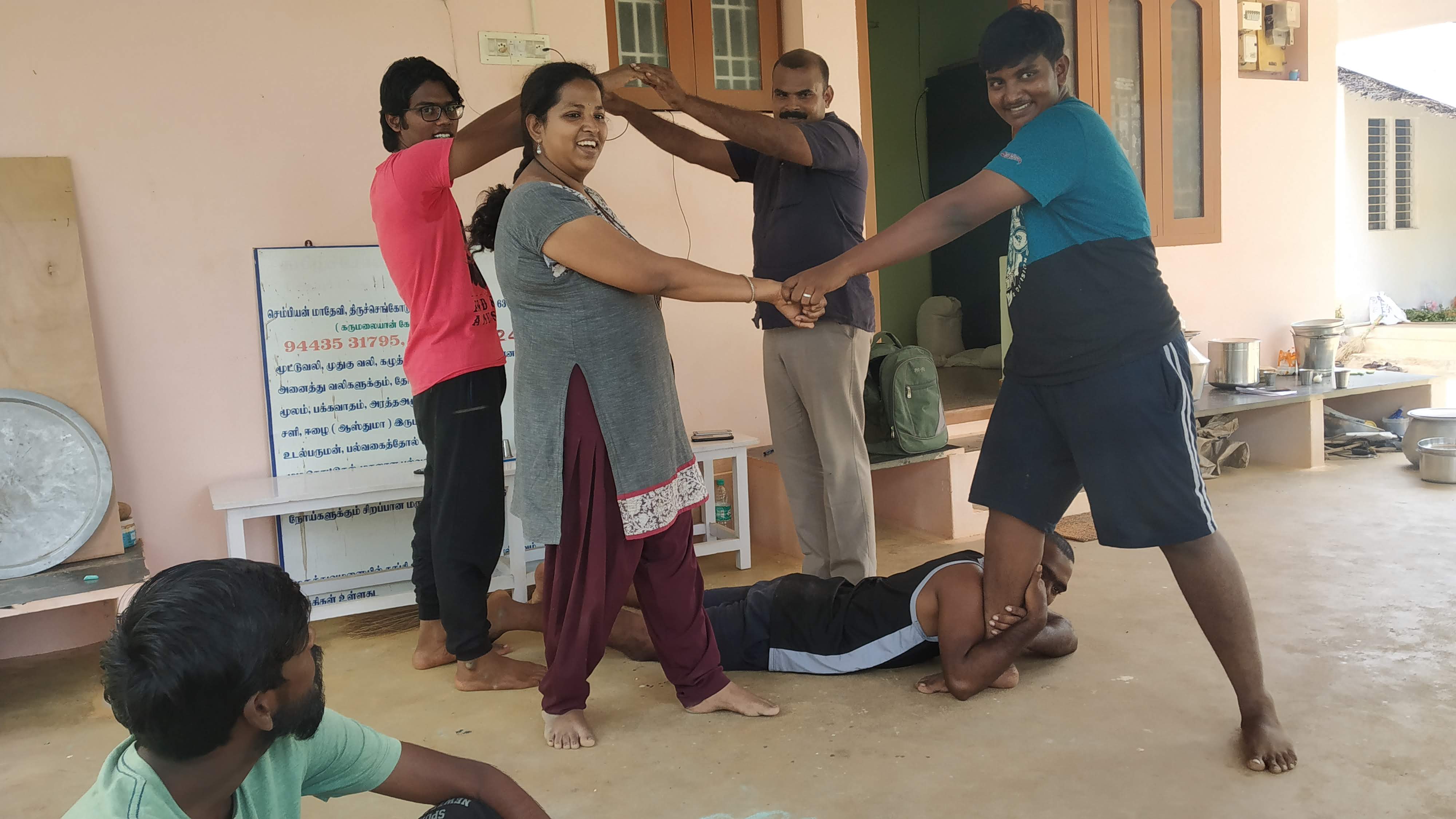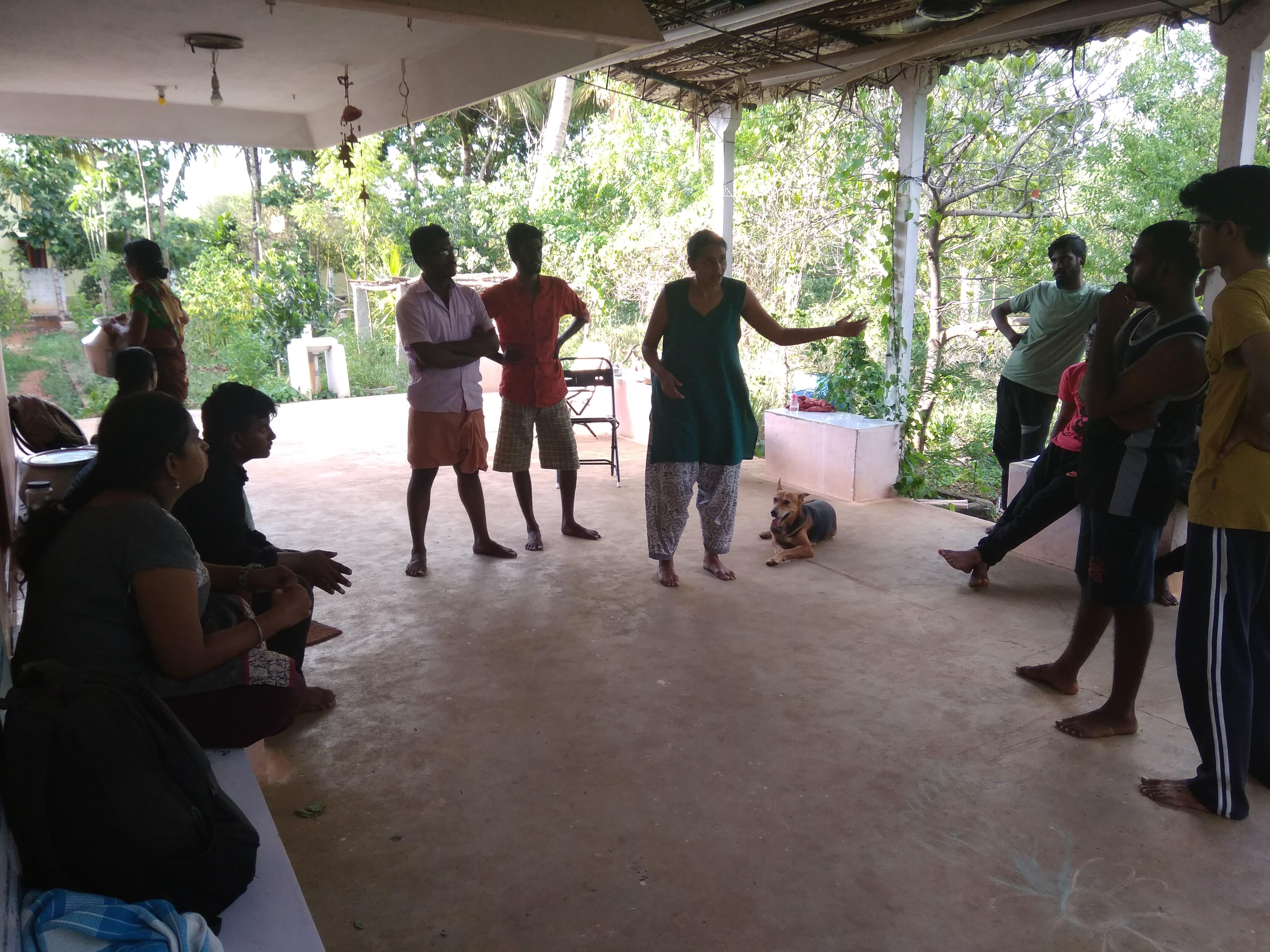 Theatre of the Oppressed & Embodied Therapeutic Practices workshop with social activists from Tamil Nadu in Vanagam, Karur